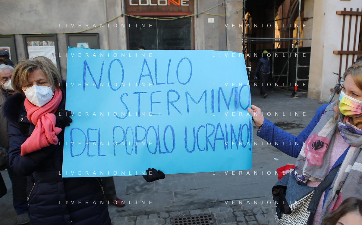 IMOLA 26 02 2022 PARTITO DEMOCRATICO CGIL CISL IN PIAZZA CADUTTI DELLA LIBERTA' CONTRO LA GUERRA IN UCRAINA NELLA FOTO SCRITTE CONTRO LA GUERRA FOTO GIANNI SANNA-AG ALDO LIVERANI SAS