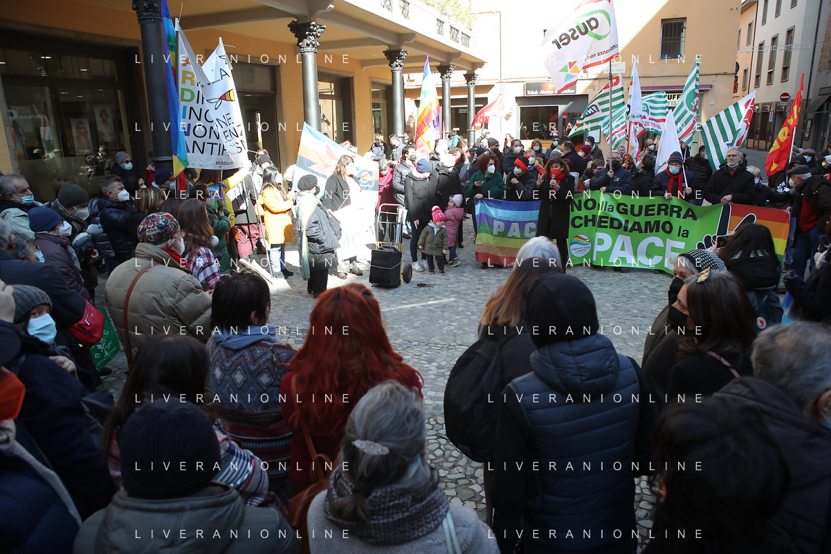 IMOLA 26 02 2022 PARTITO DEMOCRATICO CGIL CISL IN PIAZZA CADUTTI DELLA LIBERTA' CONTRO LA GUERRA IN UCRAINA NELLA FOTO BANDIERA DELLA PACE FOTO GIANNI SANNA-AG ALDO LIVERANI SAS