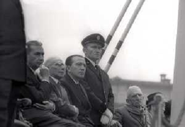 RETROSPETTIVA ALDO MORO POLITICO NELLA FOTO ALDO MORO CON GIULIO ANDREOTTI ---------- AL XX DELLA RESISTENZA IN PIAZZA DUOMO A MILANO IL GIORNO 25-04-1965 AG ALDO LIVERANI SAS