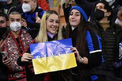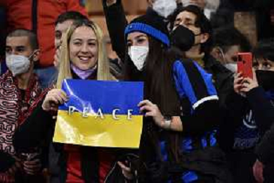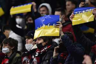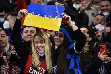 messaggio di pace a San Siro - tifosi contro la guerra in ucraina Milan vs Inter Coppa Italia Frecciarossa - semifinale gara di andata Milano 01-03-2022 Stadio Giuseppe Meazza - San Siro foto Roberto Garavaglia/ag. Aldo Liverani sas /AGENZIA ALDO LIVERANI SAS