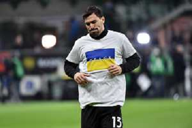 i giocatori del Milan durante il riscaldamento con una maglietta per la pace, contro la guerra in ucraina - alessio romagnoli Milan vs Inter Coppa Italia Frecciarossa - semifinale gara di andata Milano 01-03-2022 Stadio Giuseppe Meazza - San Siro foto Roberto Garavaglia/ag. Aldo Liverani sas /AGENZIA ALDO LIVERANI SAS