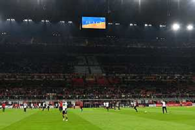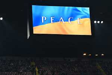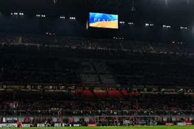 messaggio di pace a San Siro contro la guerra in ucraina Milan vs Inter Coppa Italia Frecciarossa - semifinale gara di andata Milano 01-03-2022 Stadio Giuseppe Meazza - San Siro foto Roberto Garavaglia/ag. Aldo Liverani sas /AGENZIA ALDO LIVERANI SAS