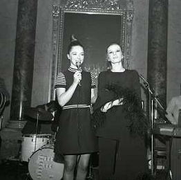 RETROSPETTIVA ABA CERCATO ANNUNCIATRICE TELEVISIVA E CONDUTTRICE TELEVISIVA NELLA FOTO ABA CERCATO A MILANO AL CIRCOLO DELLA STAMPA CON IVA ZANICCHI NELL'ANNO 1970 AG ALDO LIVERANI SAS