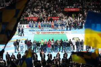 CASALECCHIO DI RENO 06 02 2022 COPPA ITALIA MASCHILE PALLAVOLO SIR SAFETY CONAD PERUGIA-ITAS TRENTINO MEDICI E INFERMIERI CANTANO L'INNO ITALIANO PRIMA DELLA PARTITA ©SANNA/AGENZIA ALDO LIVERANI SAS