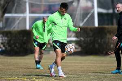 © TVRG Allenamento Champions Inter nella foto Joaquin Correa Appiano Gentile (CO) 07-03-2022 Centro sportivo Suning in memoria di Angelo Moratti Allenamento dell'Inter in preparazione della gara contro il Liverpool valevole per la gara di ritorno degli ottavi di finale della UEFA Champions League foto Roberto Garavaglia/ag. Aldo Liverani sas