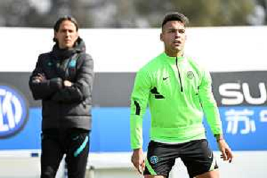 © TVRG Allenamento Champions Inter nella foto Lautaro Martinez e sulla SX l'allenatore Simone Inzaghi Appiano Gentile (CO) 07-03-2022 Centro sportivo Suning in memoria di Angelo Moratti Allenamento dell'Inter in preparazione della gara contro il Liverpool valevole per la gara di ritorno degli ottavi di finale della UEFA Champions League foto Roberto Garavaglia/ag. Aldo Liverani sas