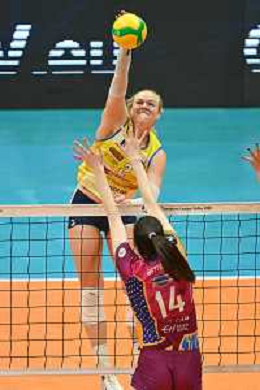 © TVRG Kathryn Rose Plummer (Conegliano) SX e Magdalena Stysiak (Monza) DX Vero Volley Monza vs Antonio Carraro Imoco Volley Conegliano CEV Champions League - quarti di finale gara di andata Monza 09-03-2022 Arena di Monza foto Roberto Garavaglia/ag. Aldo Liverani sas/AGENZIA ALDO LIVERANI SAS