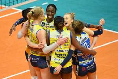 © TVRG esultanza Conegliano dopo un punto Vero Volley Monza vs Antonio Carraro Imoco Volley Conegliano CEV Champions League - quarti di finale gara di andata Monza 09-03-2022 Arena di Monza foto Roberto Garavaglia/ag. Aldo Liverani sas/AGENZIA ALDO LIVERANI SAS