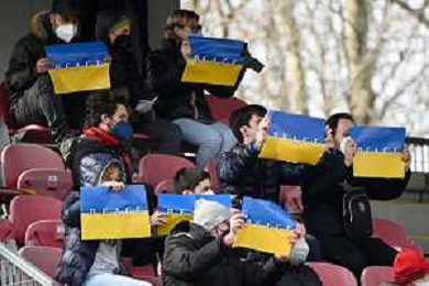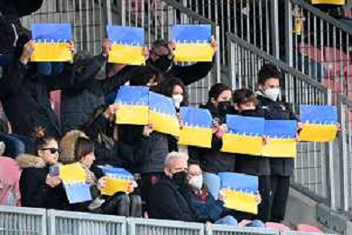 © TVRG messaggio di pace - tifosi con la bandiera dell'ucraina Milan Women vs Juventus Women Coppa Italia femminile - semifinale gara di andata Milano 12-03-2022 Centro sportivo Peppino Vismara foto Roberto Garavaglia/ag. Aldo Liverani sas/AGENZIA ALDO LIVERANI SAS
