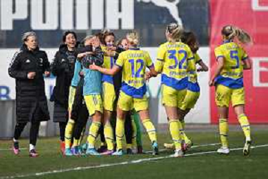 © TVRG esultanza Juventus dopo il gol del 2 a 0 Elsa Amanda Nilden Milan Women vs Juventus Women Coppa Italia femminile - semifinale gara di andata Milano 12-03-2022 Centro sportivo Peppino Vismara foto Roberto Garavaglia/ag. Aldo Liverani sas/AGENZIA ALDO LIVERANI SAS
