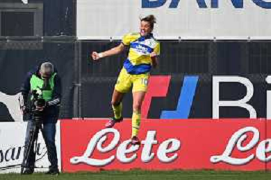 © TVRG Agnese Bonfantini (Juventus) esulta dopo il gol del 5 a 0 Milan Women vs Juventus Women Coppa Italia femminile - semifinale gara di andata Milano 12-03-2022 Centro sportivo Peppino Vismara foto Roberto Garavaglia/ag. Aldo Liverani sas/AGENZIA ALDO LIVERANI SAS