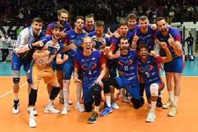 © TVRG esultanza Tours dopo un punto Vero Volley Monza vs Tours VB CEV Cup - finale gara di andata Monza 16-03-2022 Arena di Monza foto Roberto Garavaglia/ag. Aldo Liverani sas/AGENZIA ALDO LIVERANI SAS