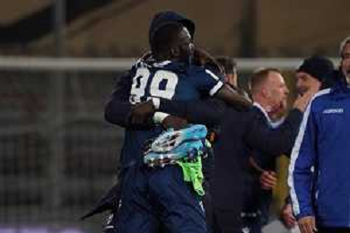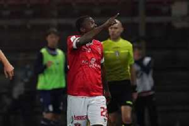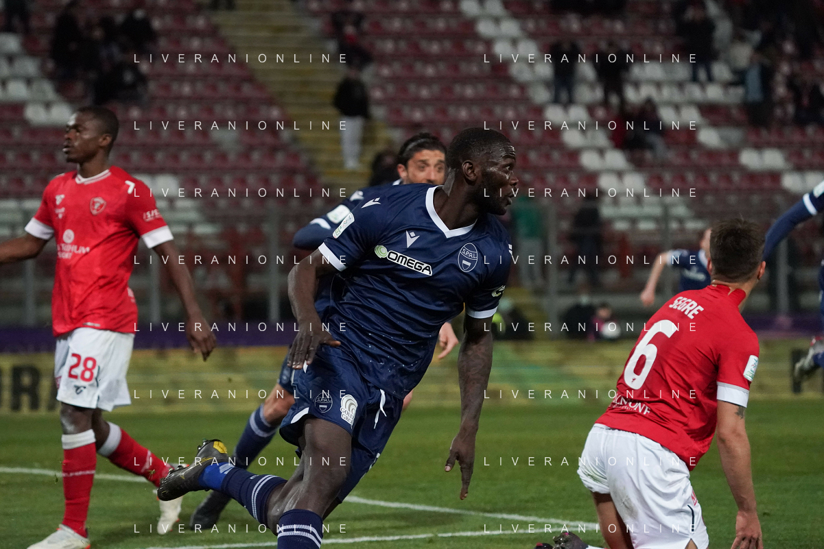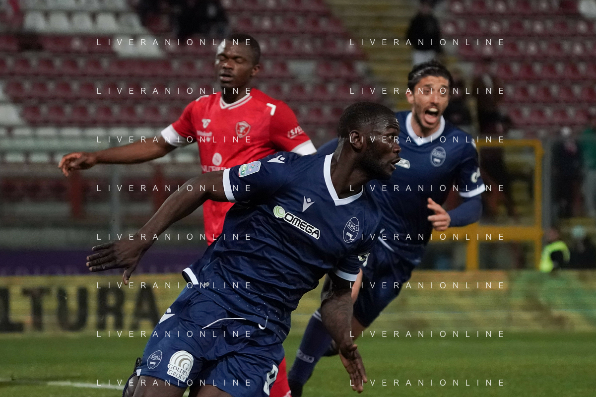 Loris Cerquiglini/LMedia - AC Perugia vs SPAL - Italian soccer Serie B match 2021/2022 March 16 2022 - Stadio Renato Curi Perugia, Italy AC Perugia vs SPAL Photo showing: latte lath emmanuel (n.99 spal) exultation 1-1 @Loris Cerquiglini/LiveMedia /AGENZIA ALDO LIVERANI SAS