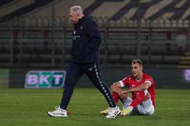 Loris Cerquiglini/LMedia - AC Perugia vs SPAL - Italian soccer Serie B match 2021/2022 March 16 2022 - Stadio Renato Curi Perugia, Italy AC Perugia vs SPAL Photo showing: massimiliano alvini (coach perugia calcio) de luca manuel (n. 09 perugia calcio) disappoint at the end of the match @Loris Cerquiglini/LiveMedia /AGENZIA ALDO LIVERANI SAS