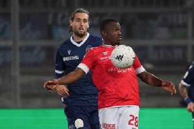 Loris Cerquiglini/LMedia - AC Perugia vs SPAL - Italian soccer Serie B match 2021/2022 March 16 2022 - Stadio Renato Curi Perugia, Italy AC Perugia vs SPAL Photo showing: kouan oulai christian “k. oulai” (n.28 perugia calcio) @Loris Cerquiglini/LiveMedia AG ALDO LIVERANI SAS