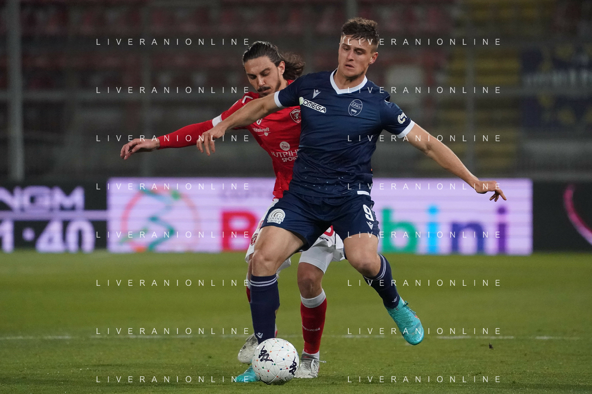 Loris Cerquiglini/LMedia - AC Perugia vs SPAL - Italian soccer Serie B match 2021/2022 March 16 2022 - Stadio Renato Curi Perugia, Italy AC Perugia vs SPAL Photo showing: gabriele angella (n.05 perugia calcio) v colombo lorenzo (n.9 spal) @Loris Cerquiglini/LiveMedia /AGENZIA ALDO LIVERANI SAS