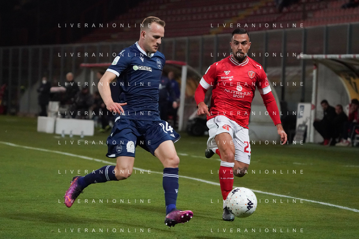 Loris Cerquiglini/LMedia - AC Perugia vs SPAL - Italian soccer Serie B match 2021/2022 March 16 2022 - Stadio Renato Curi Perugia, Italy AC Perugia vs SPAL Photo showing: dickmann lorenzo (n.24 spal) v marcello falzerano (n.23 perugia calcio) @Loris Cerquiglini/LiveMedia /AGENZIA ALDO LIVERANI SAS