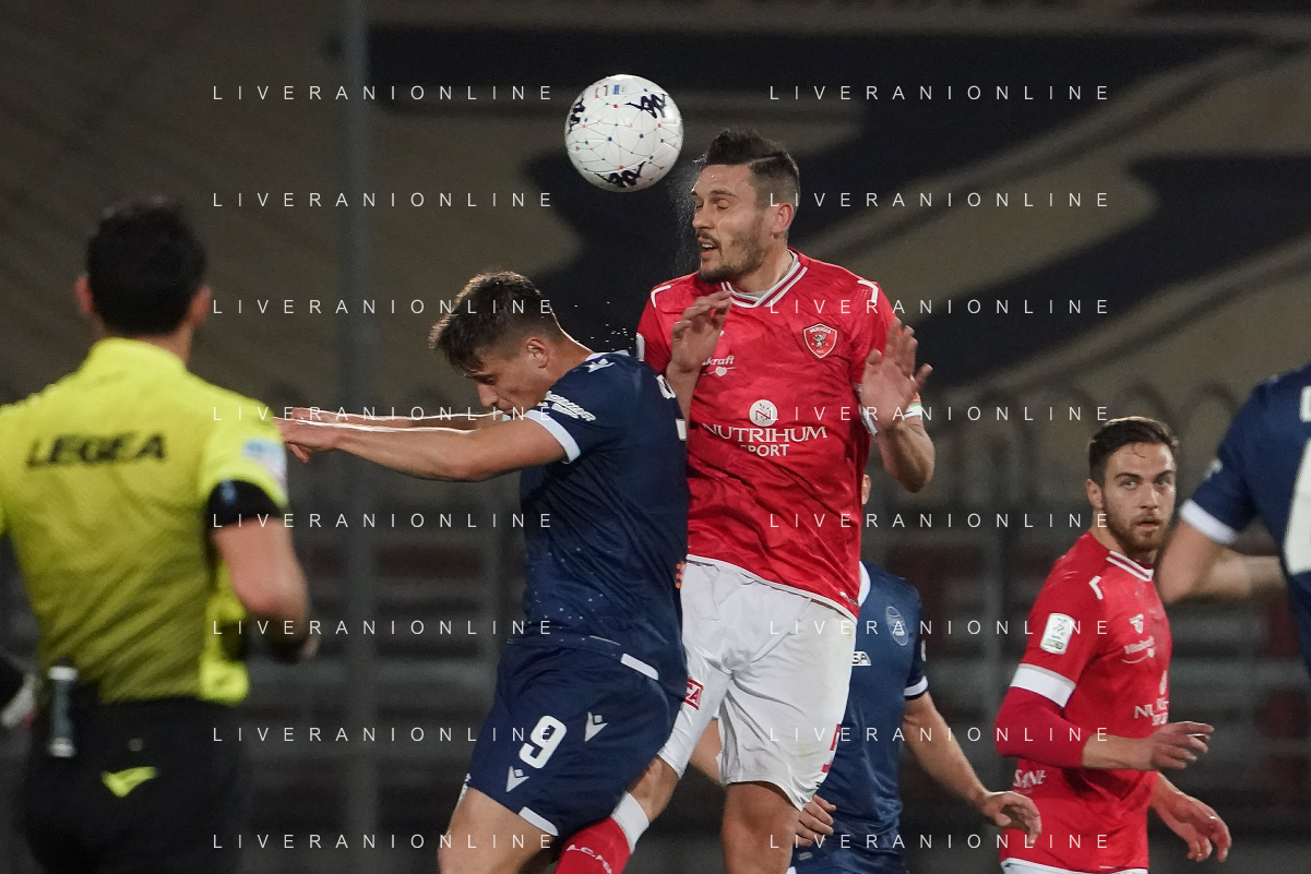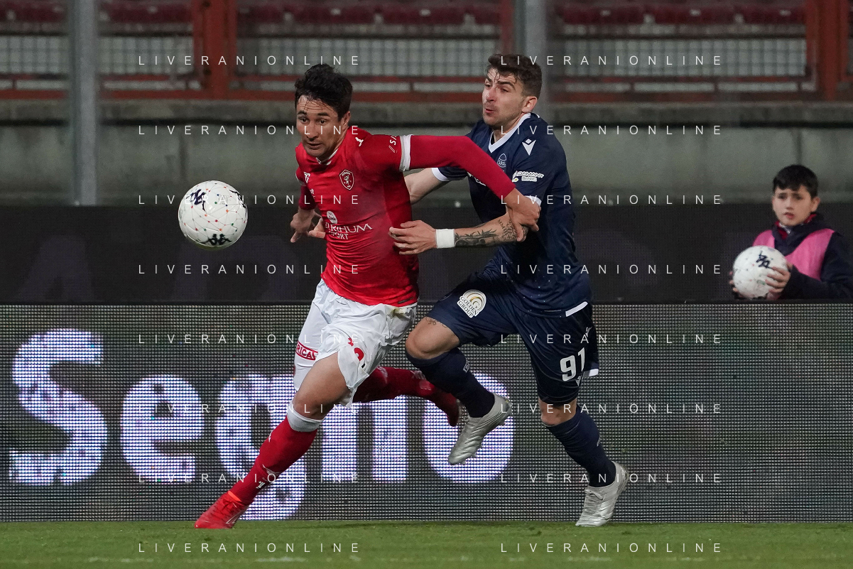 Loris Cerquiglini/LMedia - AC Perugia vs SPAL - Italian soccer Serie B match 2021/2022 March 16 2022 - Stadio Renato Curi Perugia, Italy AC Perugia vs SPAL Photo showing: santoro simone (n.25 perugia calcio) v da riva jacopo (n.40 spal) @Loris Cerquiglini/LiveMedia /AGENZIA ALDO LIVERANI SAS