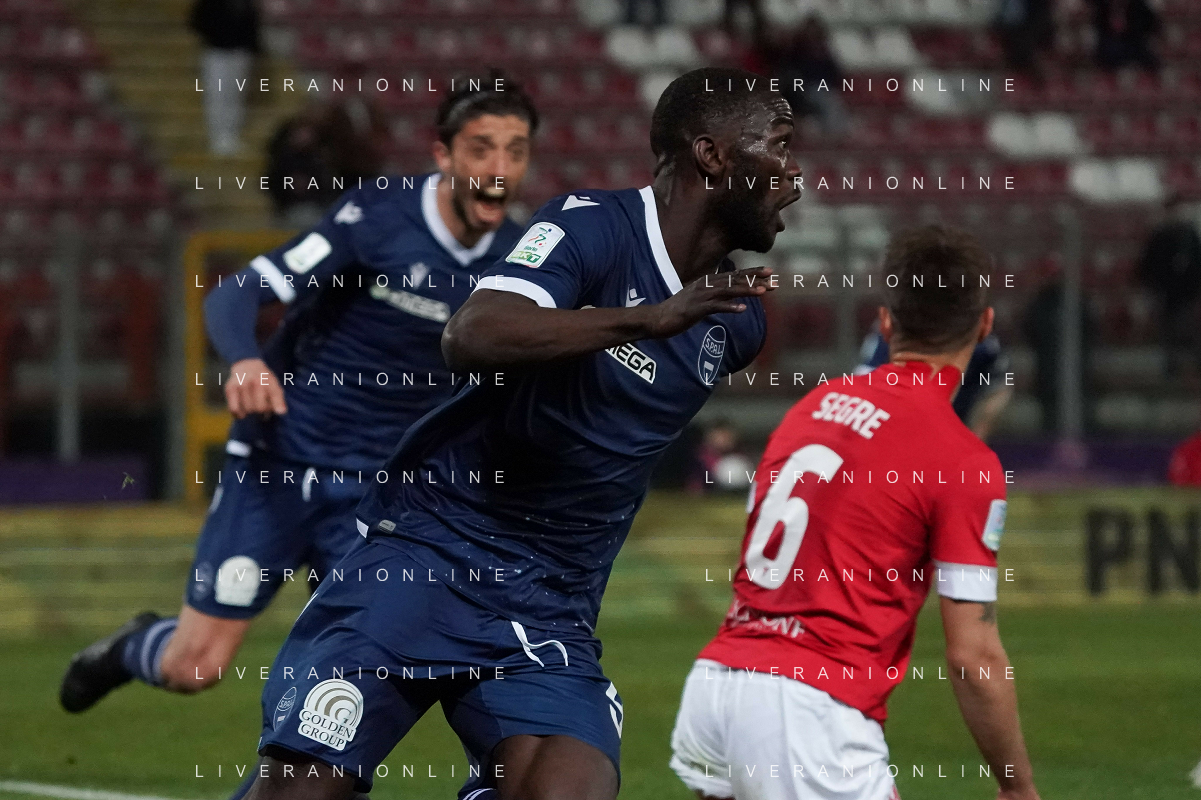 Loris Cerquiglini/LMedia - AC Perugia vs SPAL - Italian soccer Serie B match 2021/2022 March 16 2022 - Stadio Renato Curi Perugia, Italy AC Perugia vs SPAL Photo showing: latte lath emmanuel (n.99 spal) goal 1-1 @Loris Cerquiglini/LiveMedia /AGENZIA ALDO LIVERANI SAS