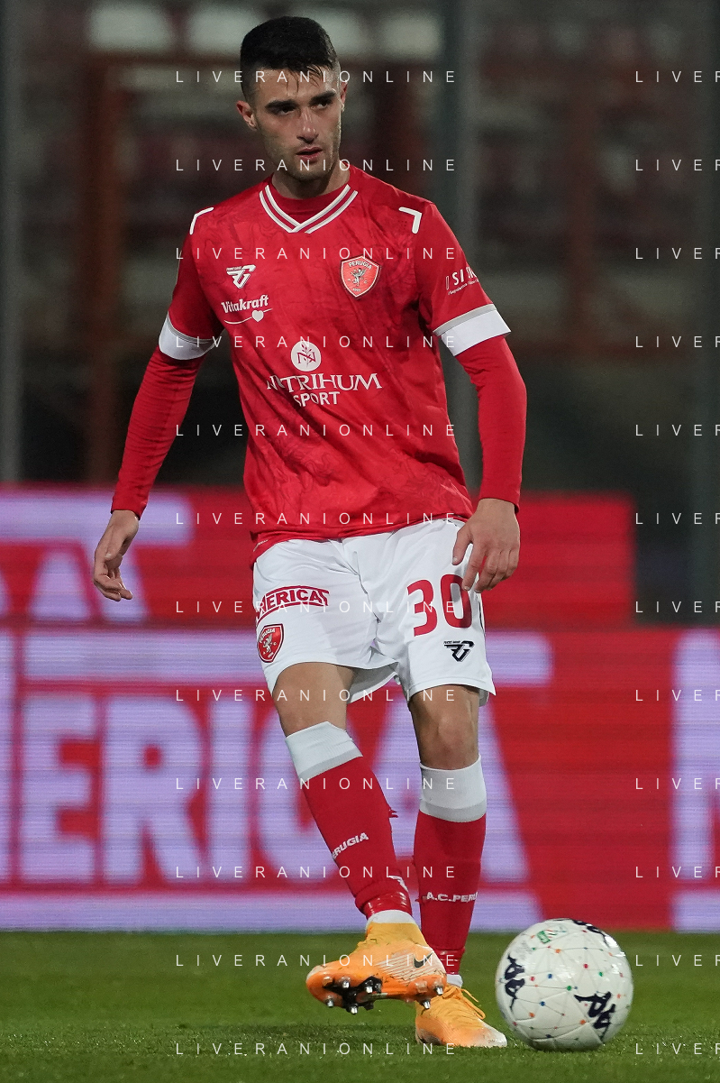 Loris Cerquiglini/LMedia - AC Perugia vs SPAL - Italian soccer Serie B match 2021/2022 March 16 2022 - Stadio Renato Curi Perugia, Italy AC Perugia vs SPAL Photo showing: marcello falzerano (n.23 perugia calcio) @Loris Cerquiglini/LiveMedia AG ALDO LIVERANI SAS