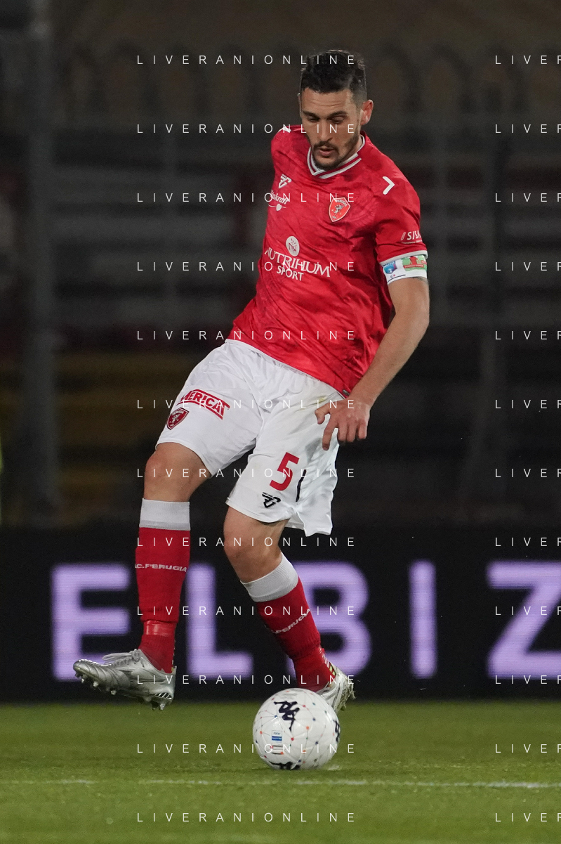 Loris Cerquiglini/LMedia - AC Perugia vs SPAL - Italian soccer Serie B match 2021/2022 March 16 2022 - Stadio Renato Curi Perugia, Italy AC Perugia vs SPAL Photo showing: burrai salvatore (n.8 perugia calcio) @Loris Cerquiglini/LiveMedia /AGENZIA ALDO LIVERANI SAS