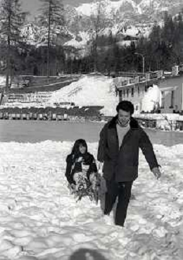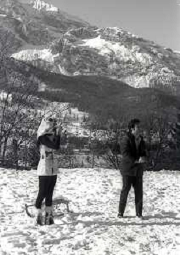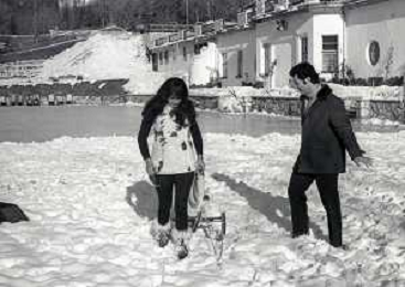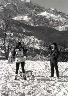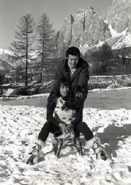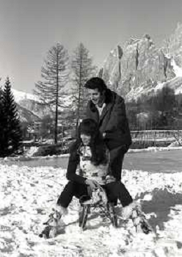 RETROSPETTIVA MARIA GRAZIA BUCCELLA ATTRICE NELLA FOTO MARIA GRAZIA BUCCELLA A CORTINA D'AMPEZZO NELL'ANNO 1970 CON VITTORIO CECCHI GORI AG ALDO LIVERANI SAS