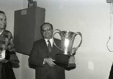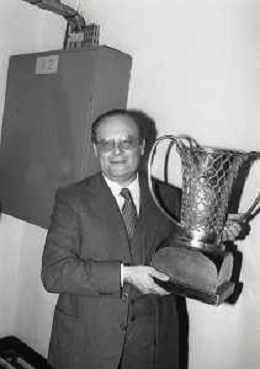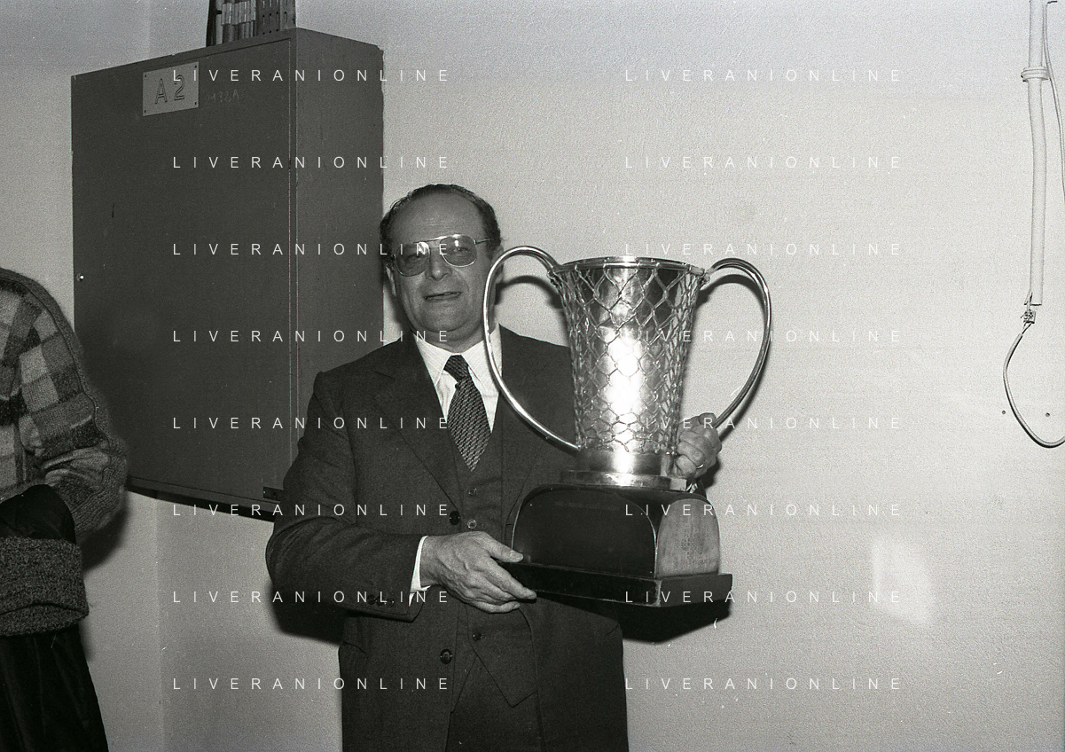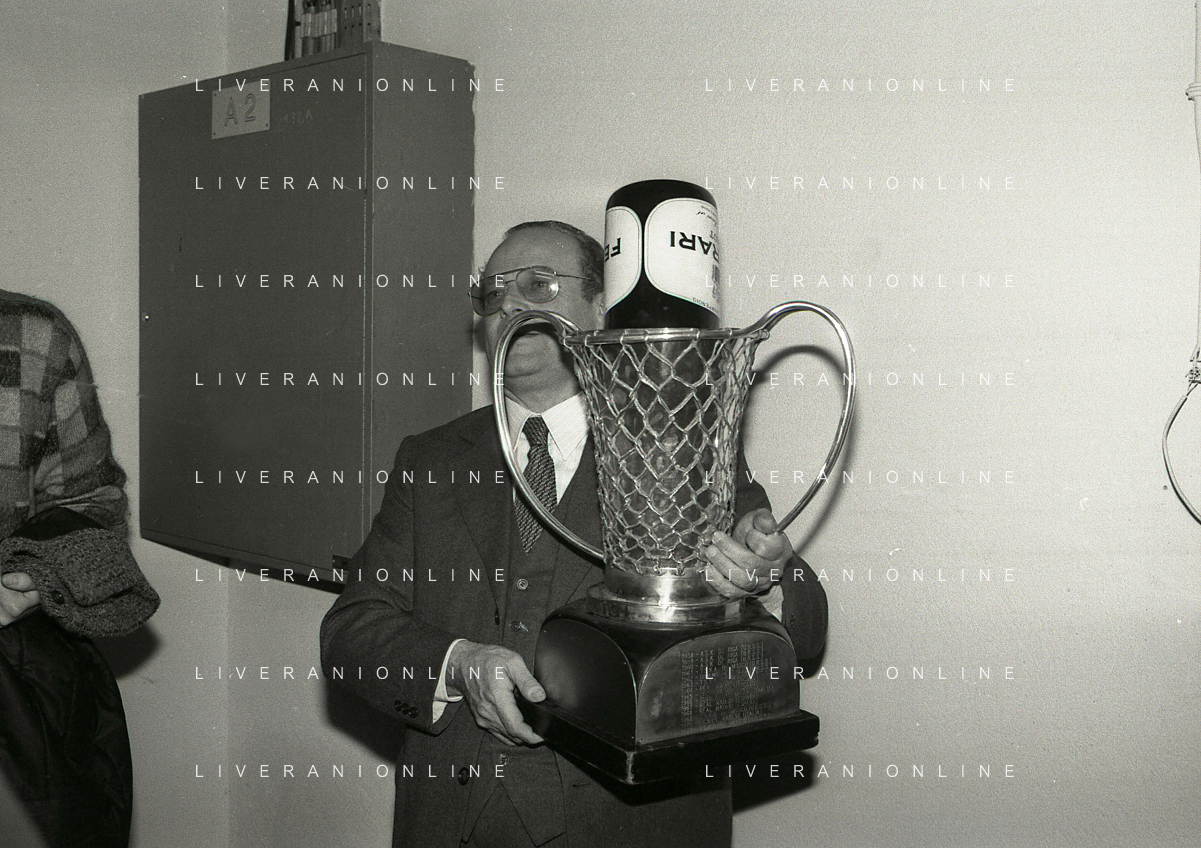 RETROSPETTIVA ALDO ALLIEVI PRESIDENTE FORD CANTU' BASKET NELLA FOTO ALDO ALLIEVI PRESIDENTE FORD CANTU' BASKET CON LA COPPA DEI CAMPIONI NELL'ANNO 1983 AG ALDO LIVERANI SAS