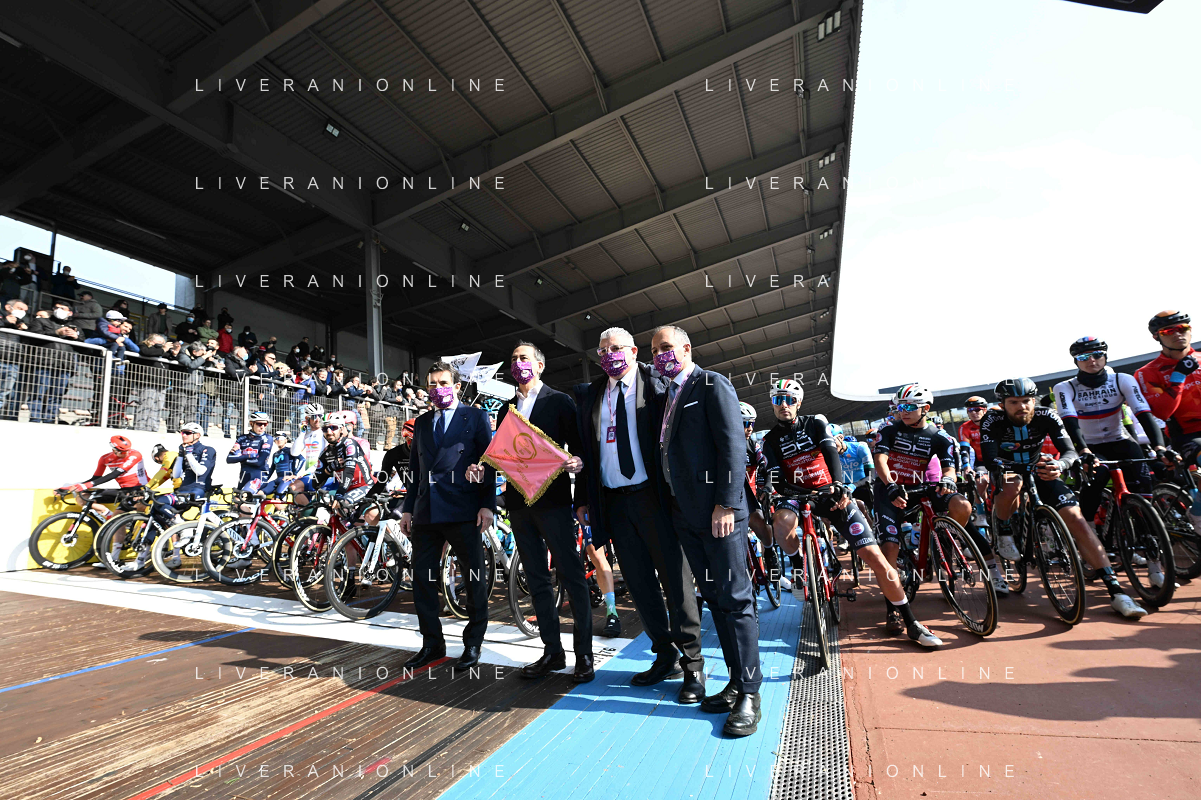 19-03-2022 Milano - Sanremo; Sala, Giuseppe; Cairo, Urbano; Dalla Casa, Enrico; Dagnoni, Cordiano; Milano - Velodromo Vigorelli; ©SIROTTI/AGENZIA ALDO LIVERANI SAS