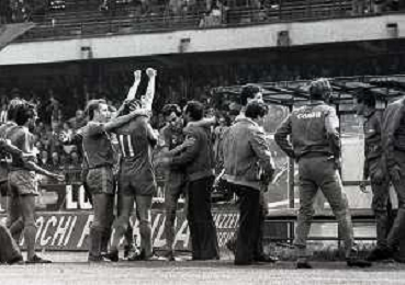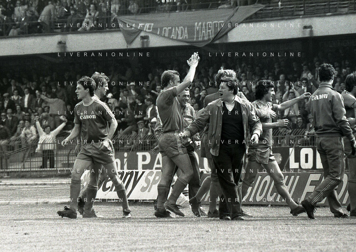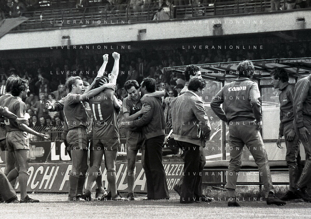 25-04-1982 VERONA CAMPIONATO DI CALCIO SERIE B VERONA-SPAL 1-0 NELLA FOTO ESULTANZA GIOCATORI VERONA DOPO IL GOAL DI DOMENICO PENZO AG ALDO LIVERANI SAS