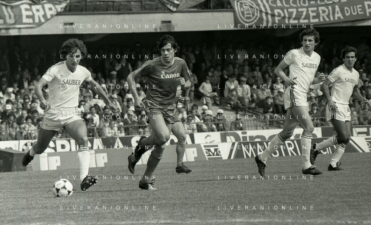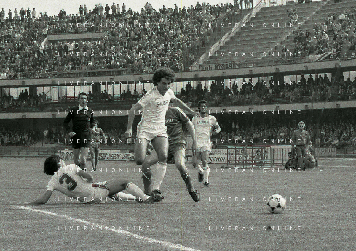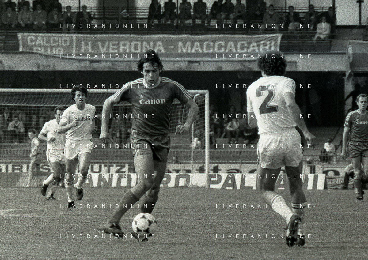 25-04-1982 VERONA CAMPIONATO DI CALCIO SERIE B VERONA-SPAL 1-0 NELLA FOTO MAURO IORATTI-DOMENICO PENZO -WILLIAM VECCHI MAURO GIBELLINI AG ALDO LIVERANI SAS