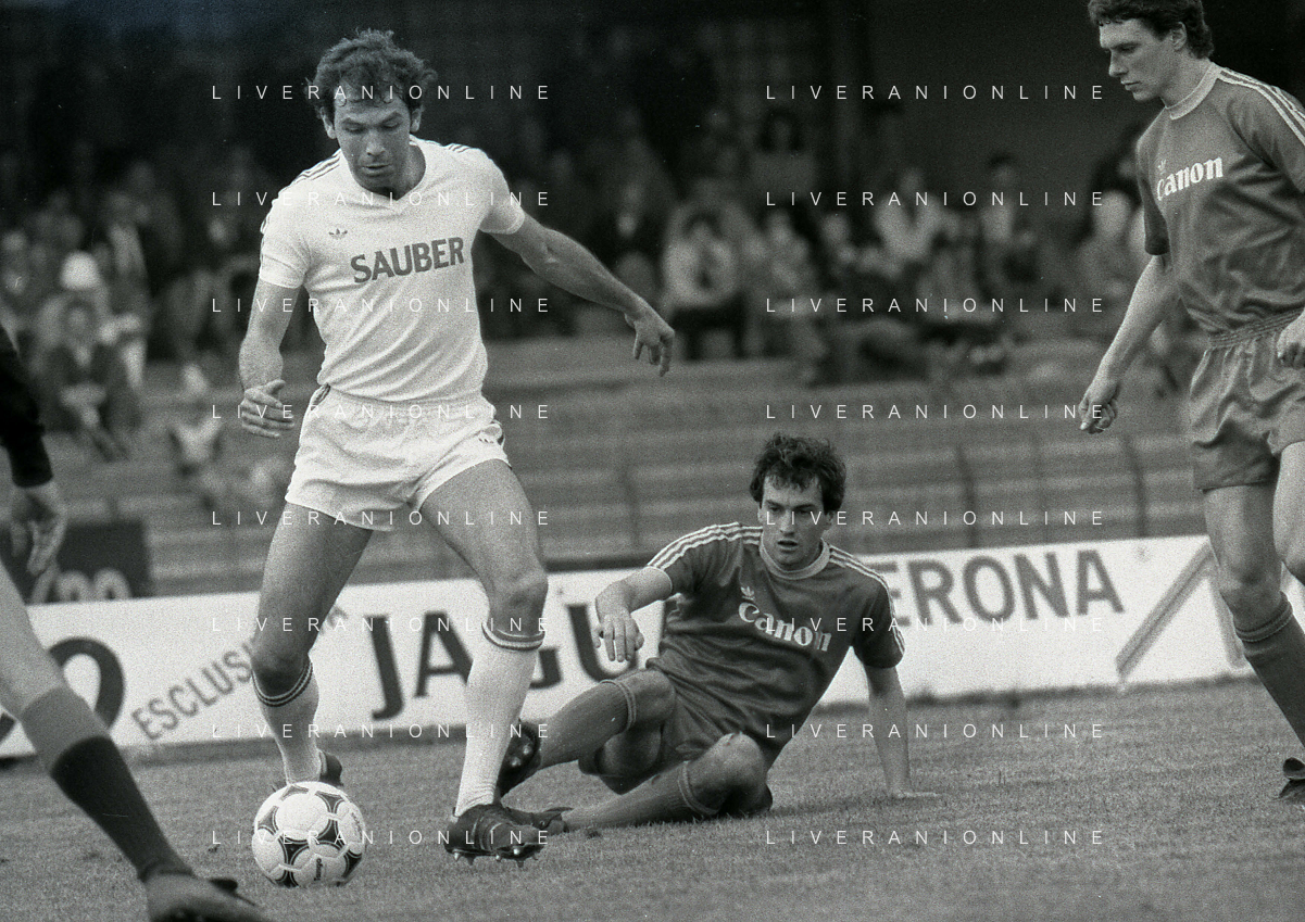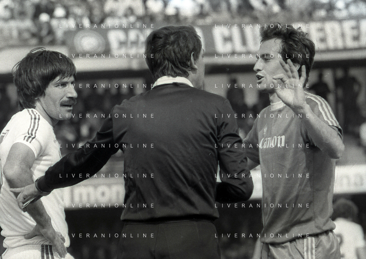 25-04-1982 VERONA CAMPIONATO DI CALCIO SERIE B VERONA-SPAL 1-0 NELLA FOTO GIAN FILIPPO REALI-ARBITRO VITTORIO BENEDETTI E FRANCESCO GUIDOLIN AG ALDO LIVERANI SAS