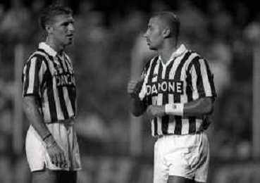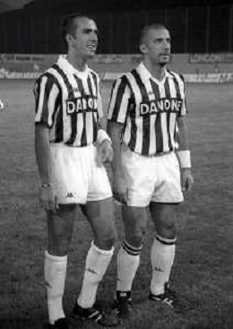 24-08-1992 SAINT VINCENT TORNEO CESARE BARETTI JUVENTUS -NAZIONALE USA 3-0 NELLA FOTO MASSIMO CARRERA E GIANLUCA VIALLI AG ALDO LIVERANI SAS