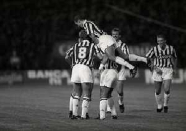 24-08-1992 SAINT VINCENT TORNEO CESARE BARETTI JUVENTUS -NAZIONALE USA 3-0 NELLA FOTO ESULTANZA GIOCATORI JUVENTUS DOPO IL GOAL AG ALDO LIVERANI SAS