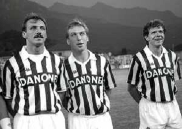 24-08-1992 SAINT VINCENT TORNEO CESARE BARETTI JUVENTUS -NAZIONALE USA 3-0 NELLA FOTO JURGEN KOLLER-DAVID PLATT-ANDREAS MOLLER AG ALDO LIVERANI SAS