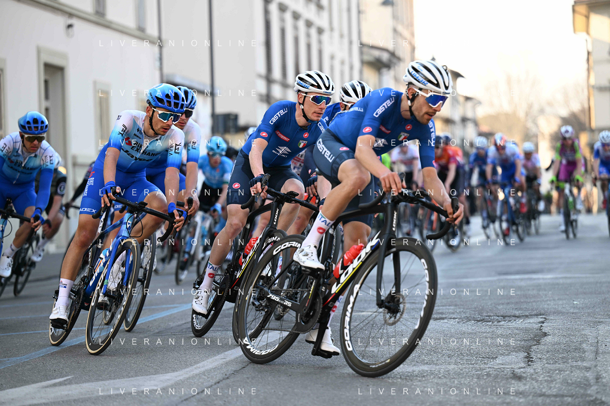 20-03-2022 Per Sempre Alfredo; 2022, Uae Emirates; 2022, Bikeexchange - Jayco; 2022, Bingoal - Pauwels Sauces Wb; Hirschi, Marc; Smith, Dion; Mertz, Remy; Martini, Alfredo; Sesto Fiorentino; ©SIROTTI/AGENZIA ALDO LIVERANI SAS