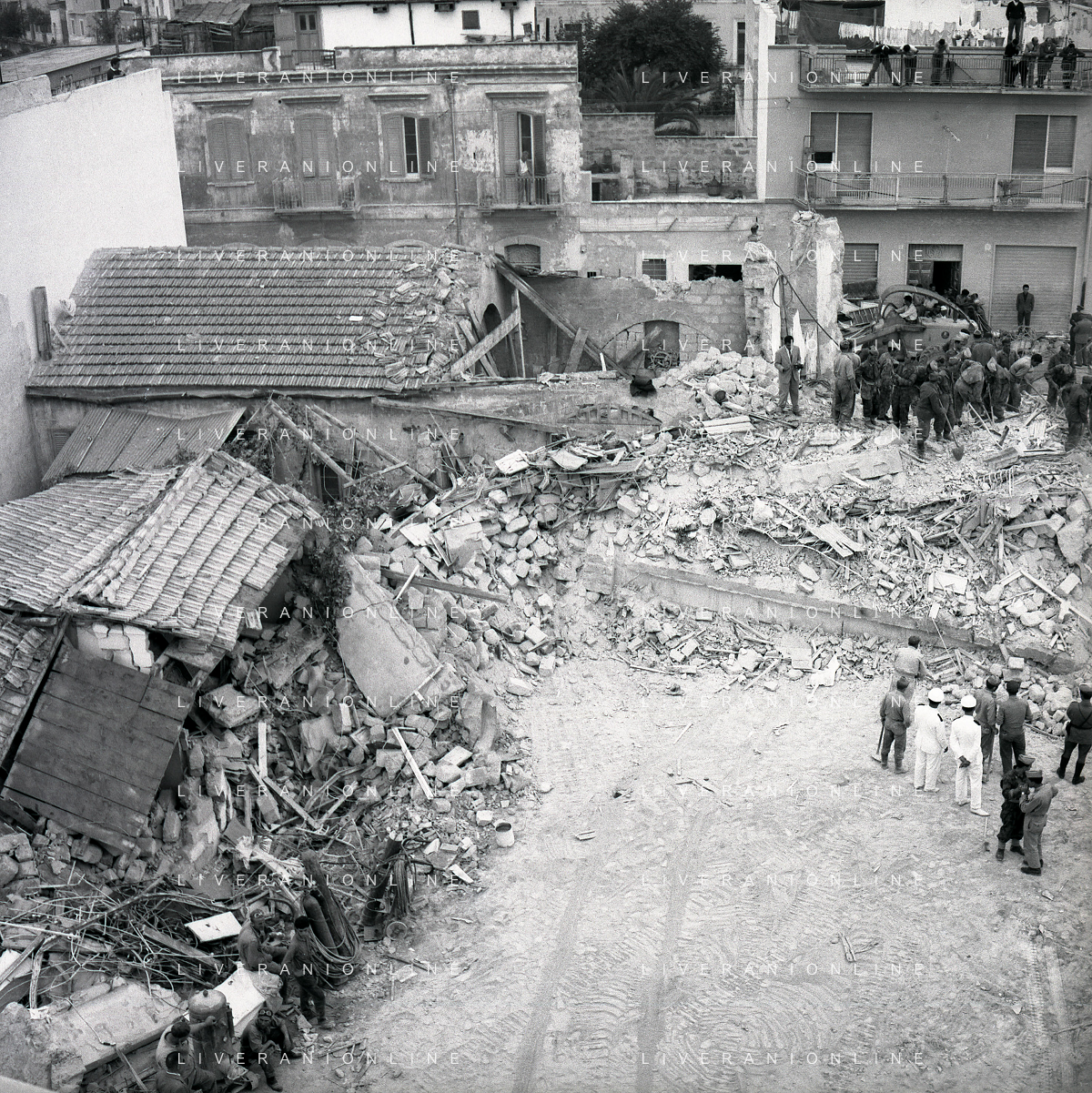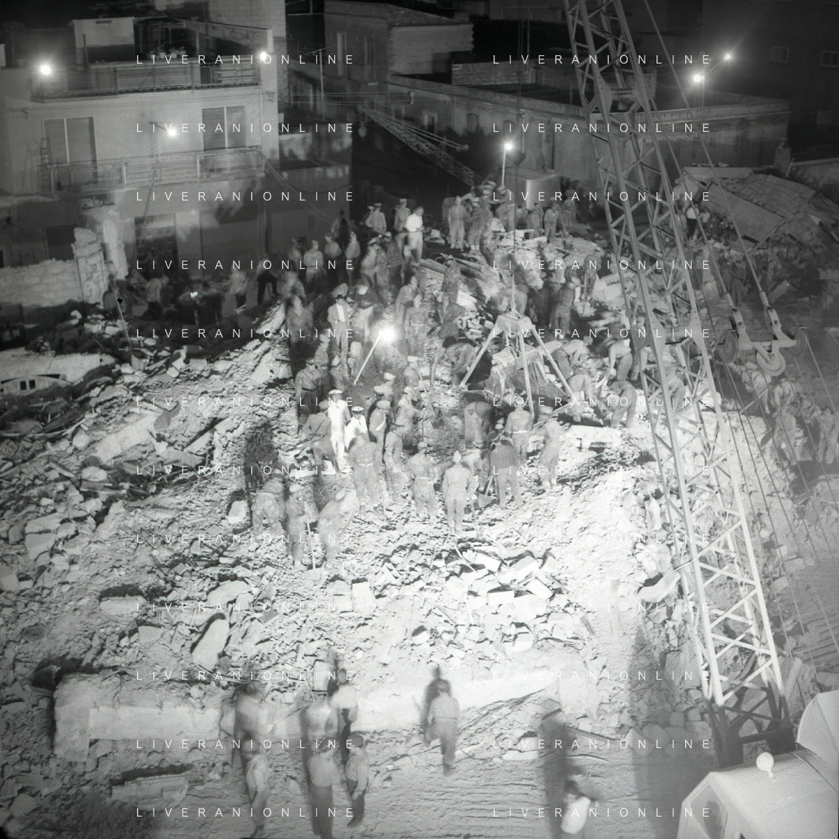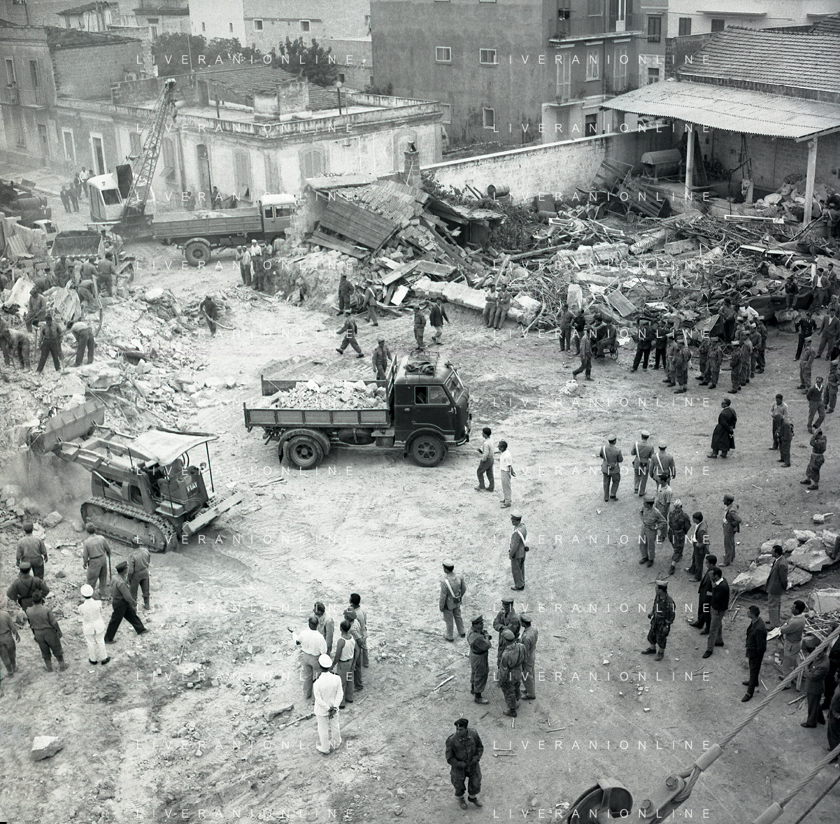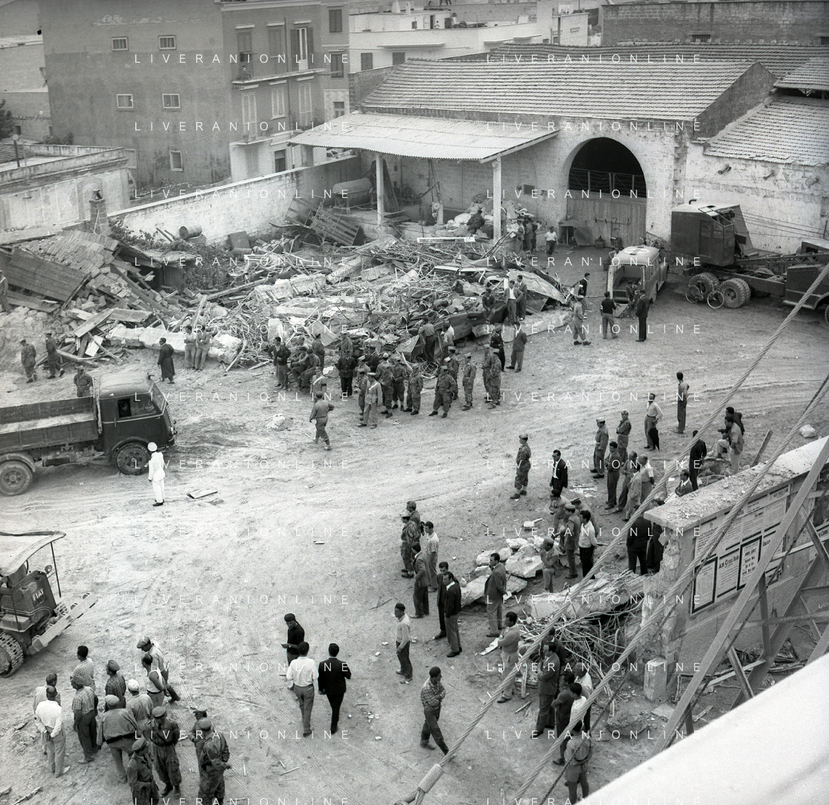 16-09-1959 BARLETTA-Il crollo di via Canosa 7 fu un cedimento strutturale occorso a Barletta la mattina del 16 settembre 1959, quando uno stabile di cinque piani costruito appena un anno prima crollò uccidendo 58 dei suoi 71 abitanti. Altre 12 persone rimasero ferite e sopravvissero. AG ALDO LIVERANI SAS