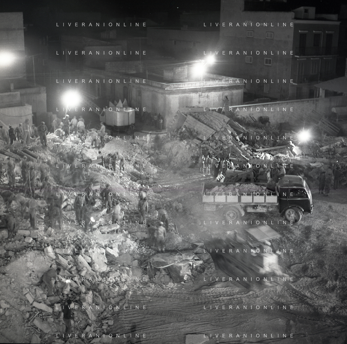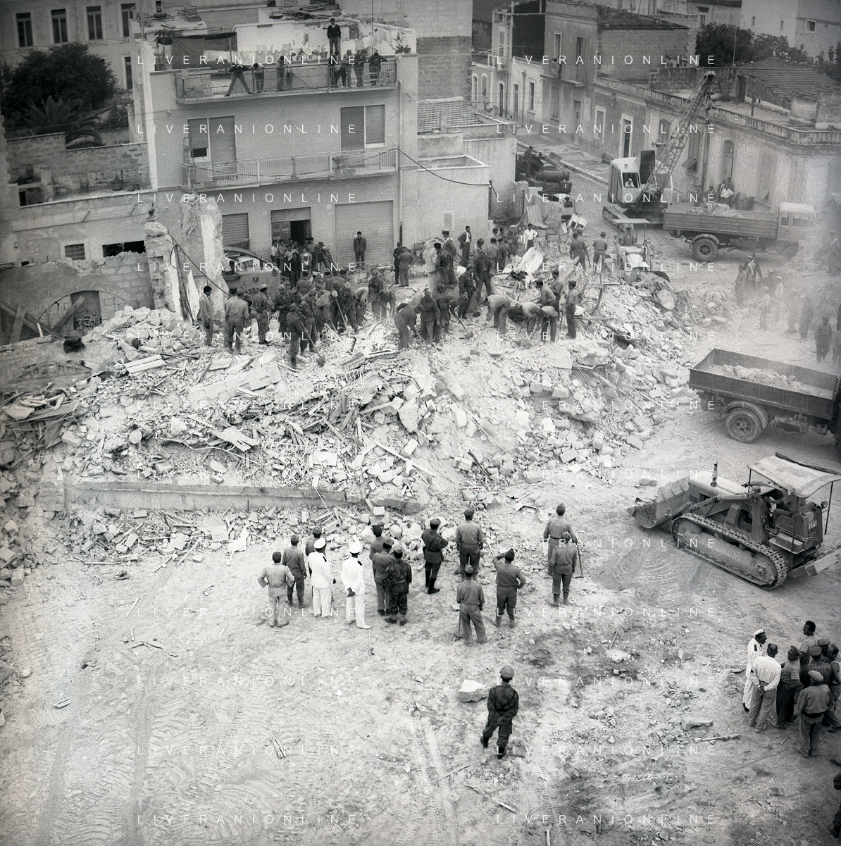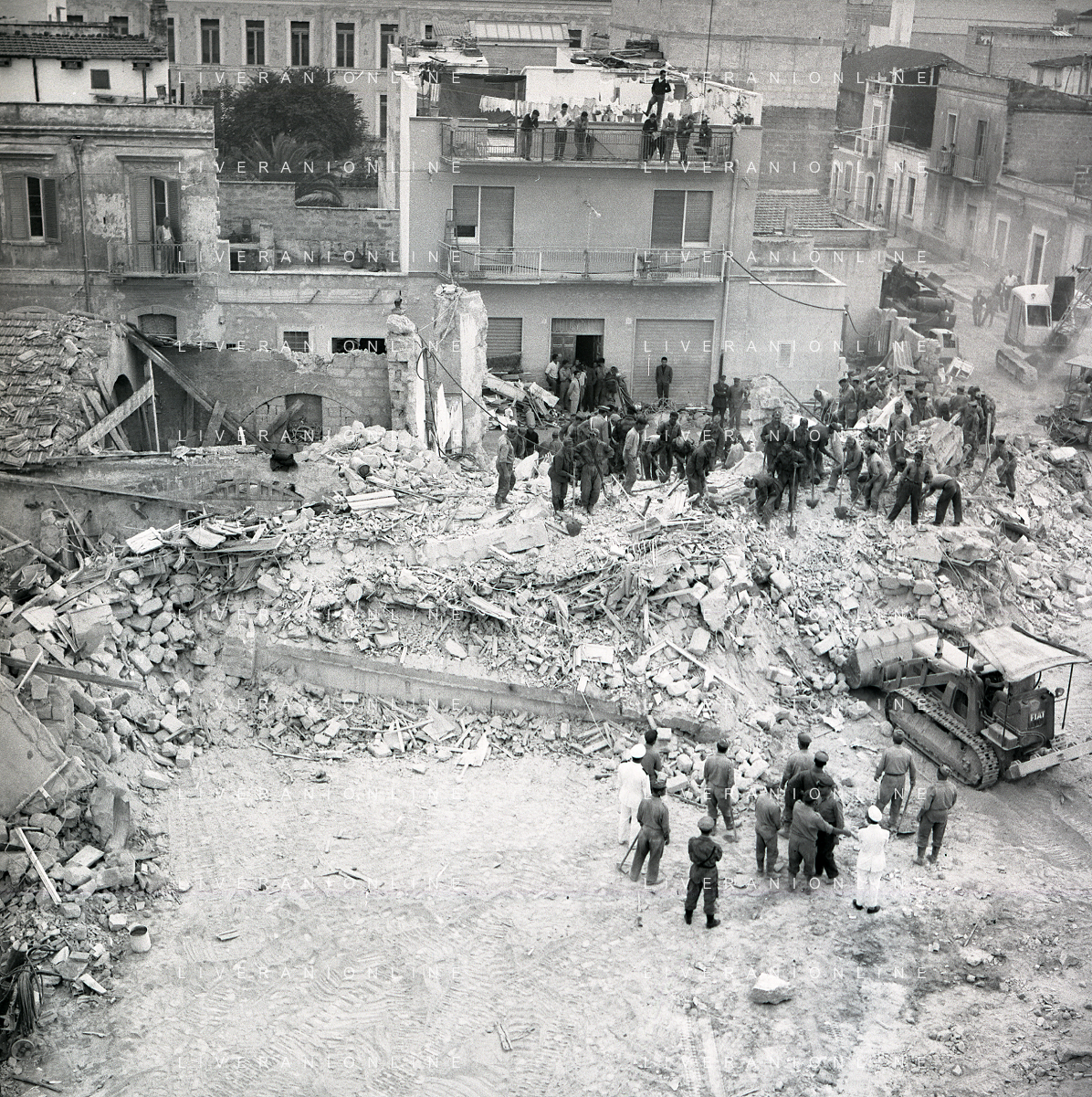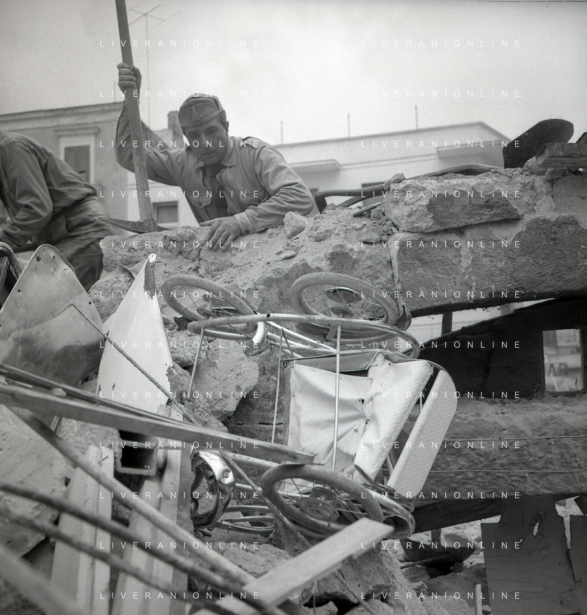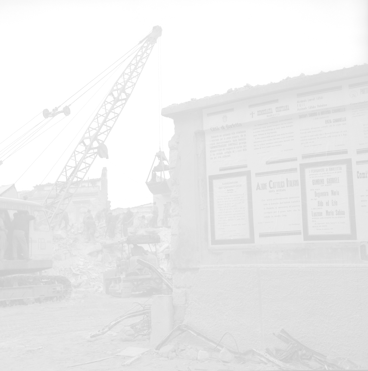 16-09-1959 BARLETTA-Il crollo di via Canosa 7 fu un cedimento strutturale occorso a Barletta la mattina del 16 settembre 1959, quando uno stabile di cinque piani costruito appena un anno prima crollò uccidendo 58 dei suoi 71 abitanti. Altre 12 persone rimasero ferite e sopravvissero. AG ALDO LIVERANI SAS