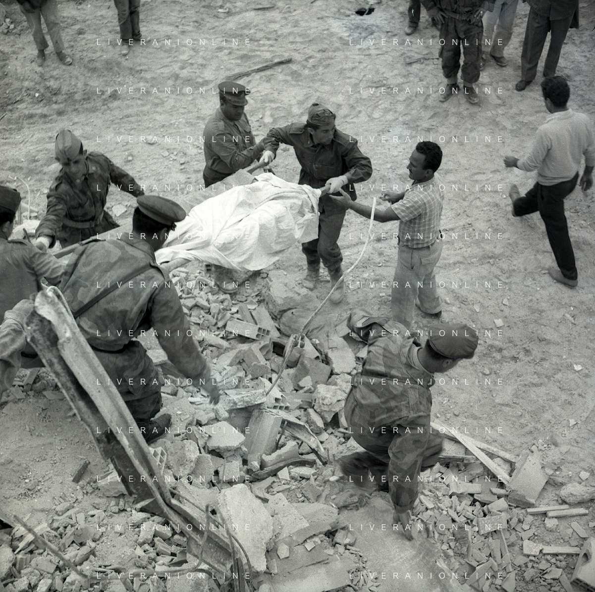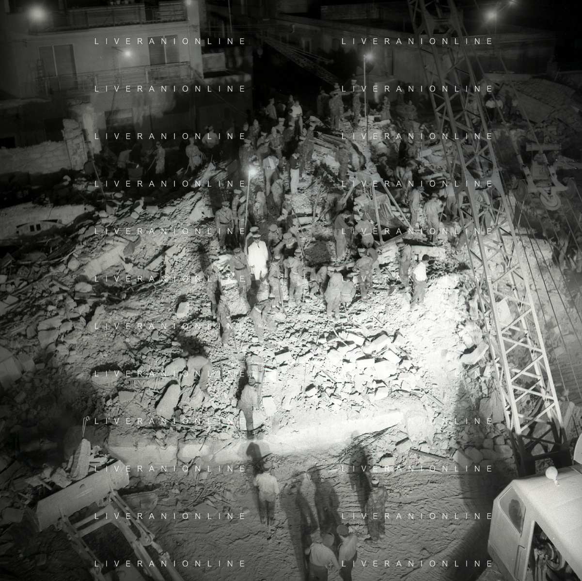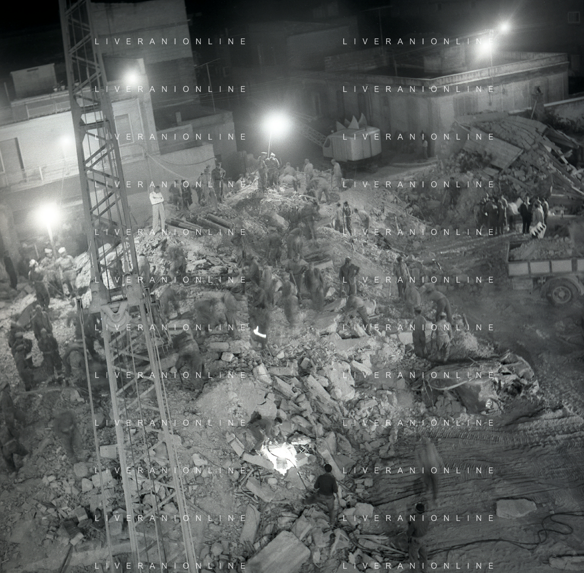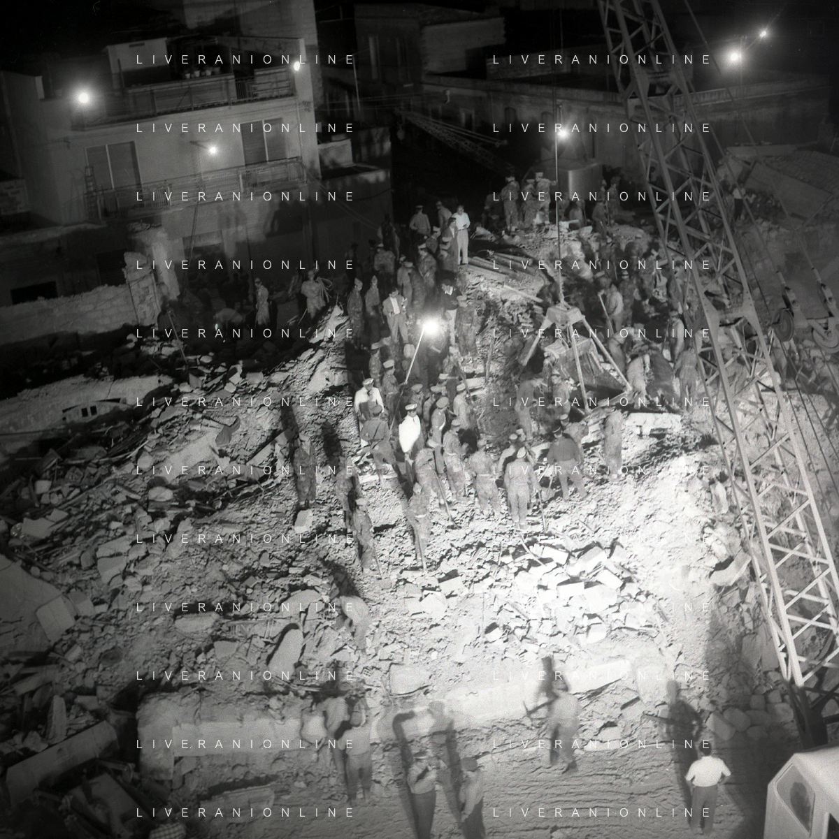 16-09-1959 BARLETTA-Il crollo di via Canosa 7 fu un cedimento strutturale occorso a Barletta la mattina del 16 settembre 1959, quando uno stabile di cinque piani costruito appena un anno prima crollò uccidendo 58 dei suoi 71 abitanti. Altre 12 persone rimasero ferite e sopravvissero. AG ALDO LIVERANI SAS