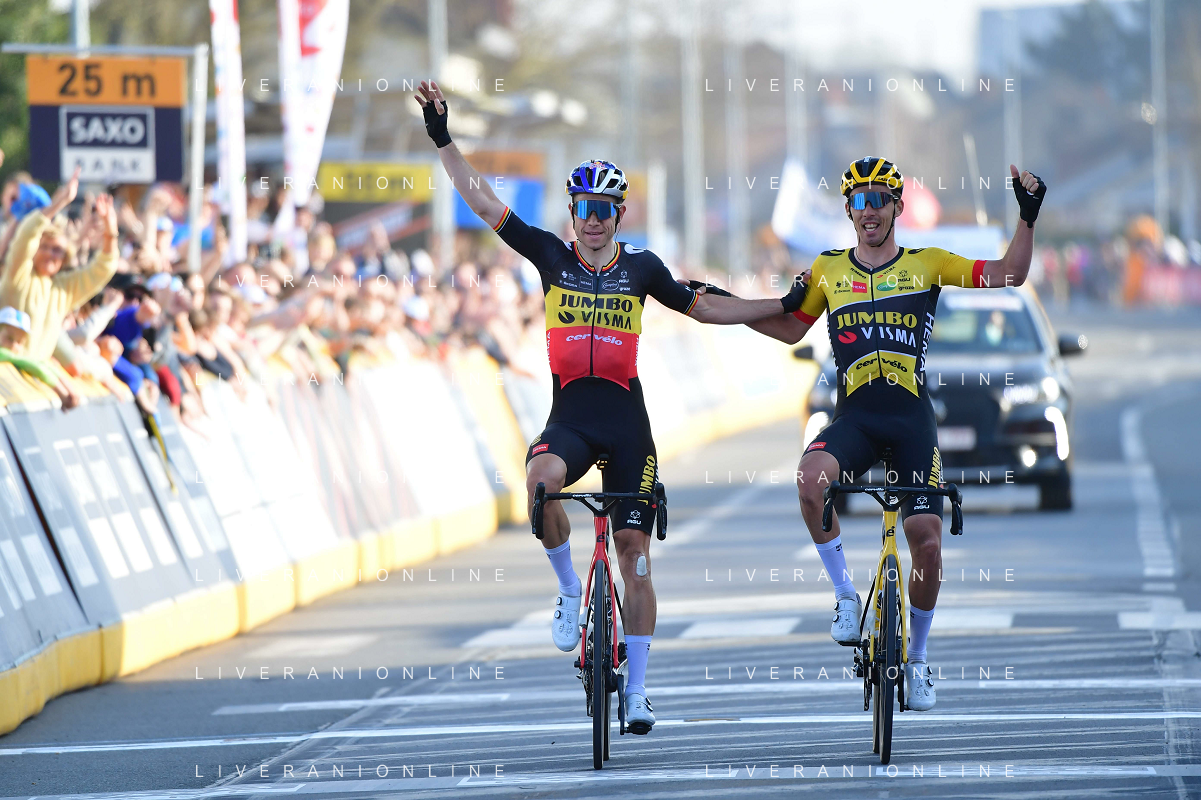 25-03-2022 E3 Harelbeke; 2022, Jumbo - Visma; Van Aert, Wout; Laporte, Christophe; Harelbeke; ©SIROTTI/AGENZIA ALDO LIVERANI SAS