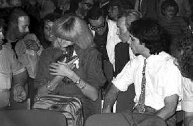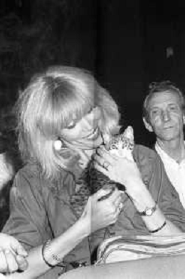RETROSPETTIVA AMANDA LEAR CANTANTE NELLA FOTO CON IL MARITO ALAIN-PHILIPPE MALAGNAC d'ARGENS de VILLELE ALLA GONDOLA D'ORO A VENEZIA NEL 1980 E UN GATTINO IN BRACCIO ©Archivio Giovanni Liverani/AGENZIA ALDO LIVERANI SAS