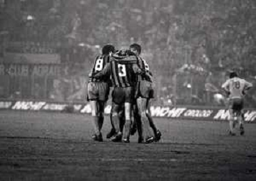 05-11-1980 MILANO OTTAVI DI FINALE RITORNO CHAMPIONS LEAGUE INTER-NANTES 1-1 NELLA FOTO ABBRACCI GIOCATORI INTER DOPO IL GOAL DI ALESSANDRO ALTOBELLI AG ALDO LIVERANI SAS