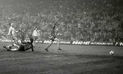 05-11-1980 MILANO OTTAVI DI FINALE RITORNO CHAMPIONS LEAGUE INTER-NANTES 1-1 NELLA FOTO GOAL ALESSANDRO ALTOBELLI AG ALDO LIVERANI SAS