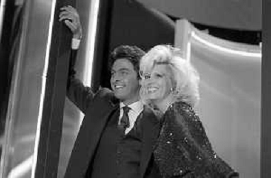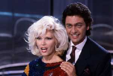 RETROSPETTIVA AMANDA LEAR CANTANTE E ATTRICE NELLA FOTO NEL PROGRAMMA TELEVISIVO 'W LE DONNE' A MILANO NEL 1984 CON ANDREA GIORDANA ©Archivio Giovanni Liverani/AGENZIA ALDO LIVERANI SAS