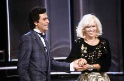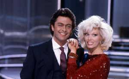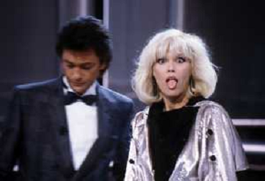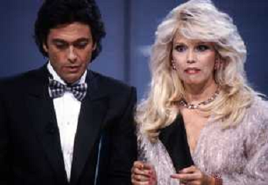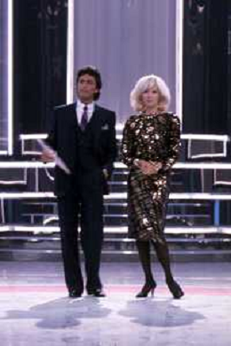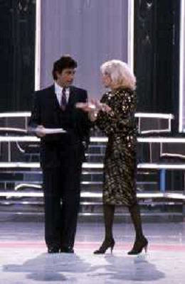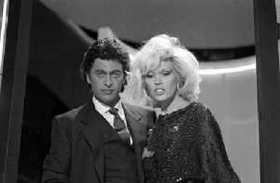RETROSPETTIVA AMANDA LEAR CANTANTE E ATTRICE NELLA FOTO NEL PROGRAMMA TELEVISIVO 'W LE DONNE' A MILANO NEL 1984 CON MAURIZIO MERLI ©Archivio Giovanni Liverani/AGENZIA ALDO LIVERANI SAS