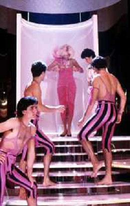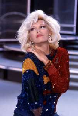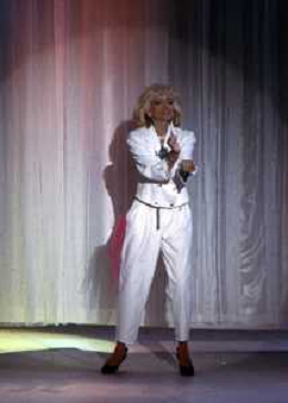 RETROSPETTIVA AMANDA LEAR CANTANTE E ATTRICE NELLA FOTO NEL PROGRAMMA TELEVISIVO 'W LE DONNE' A MILANO NEL 1985 ©Archivio Giovanni Liverani/AGENZIA ALDO LIVERANI SAS