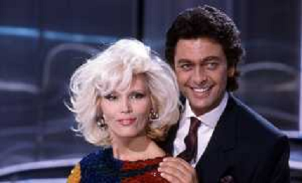 RETROSPETTIVA AMANDA LEAR CANTANTE E ATTRICE NELLA FOTO NEL PROGRAMMA TELEVISIVO 'W LE DONNE' A MILANO NEL 1985 CON ANDREA GIORDANA ©Archivio Giovanni Liverani/AGENZIA ALDO LIVERANI SAS