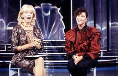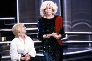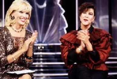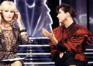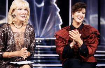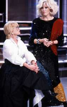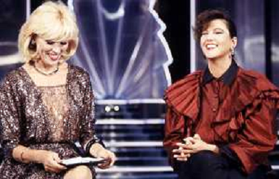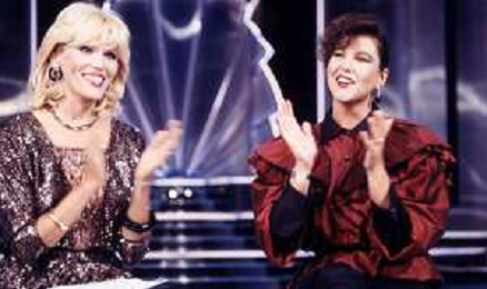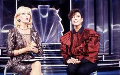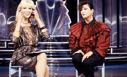 RETROSPETTIVA AMANDA LEAR CANTANTE E ATTRICE NELLA FOTO NEL PROGRAMMA TELEVISIVO 'W LE DONNE' A MILANO NEL 1984 CON SANDRA MONDAINI ©Archivio Giovanni Liverani/AGENZIA ALDO LIVERANI SAS