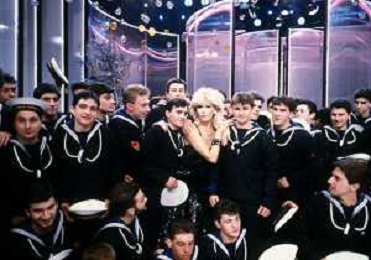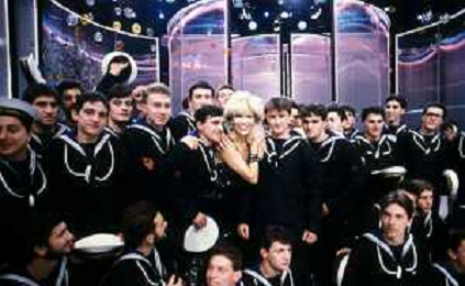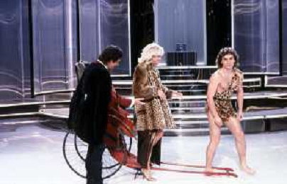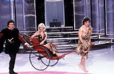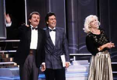 RETROSPETTIVA AMANDA LEAR CANTANTE E ATTRICE NELLA FOTO NEL PROGRAMMA TELEVISIVO 'W LE DONNE' A MILANO NEL 1984 CON ANDREA GIORDANA E MARCO PREDOLIN ©Archivio Giovanni Liverani/AGENZIA ALDO LIVERANI SAS