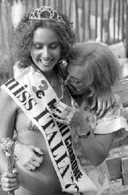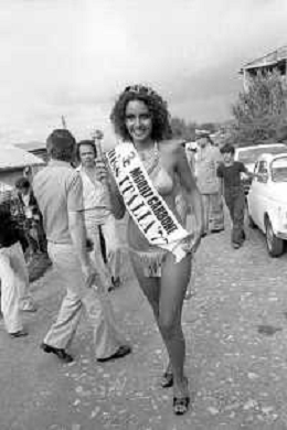 RETROSPETTIVA ANNA KANAKIS ATTRICE E MODELLA NELLA FOTO AL CONCORSO DI BELLEZZA MISS ITALIA NEL SETTEMBRE DEL 1977 CON LA MADRE CETTINA COSTANZO ©Archivio Giovanni Liverani/AGENZIA ALDO LIVERANI SAS