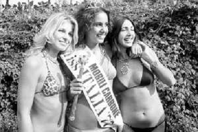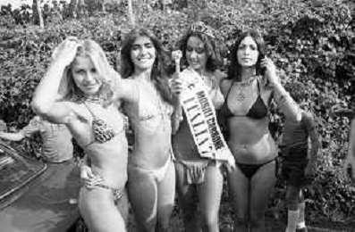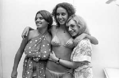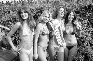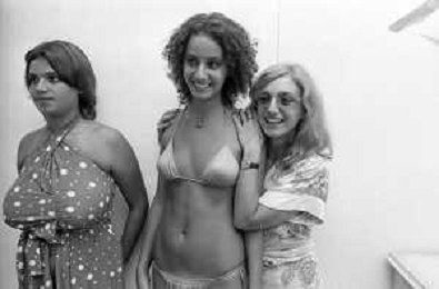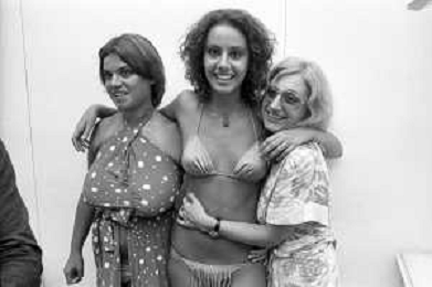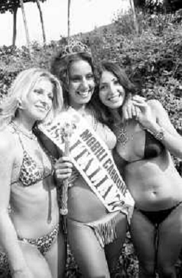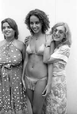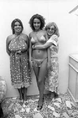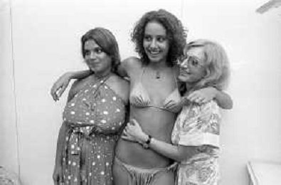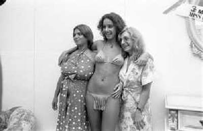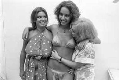RETROSPETTIVA ANNA KANAKIS ATTRICE E MODELLA NELLA FOTO AL CONCORSO DI BELLEZZA MISS ITALIA NEL SETTEMBRE DEL 1977 CON LA MADRE CETTINA COSTANZO E LA SORELLA ELENA ©Archivio Giovanni Liverani/AGENZIA ALDO LIVERANI SAS